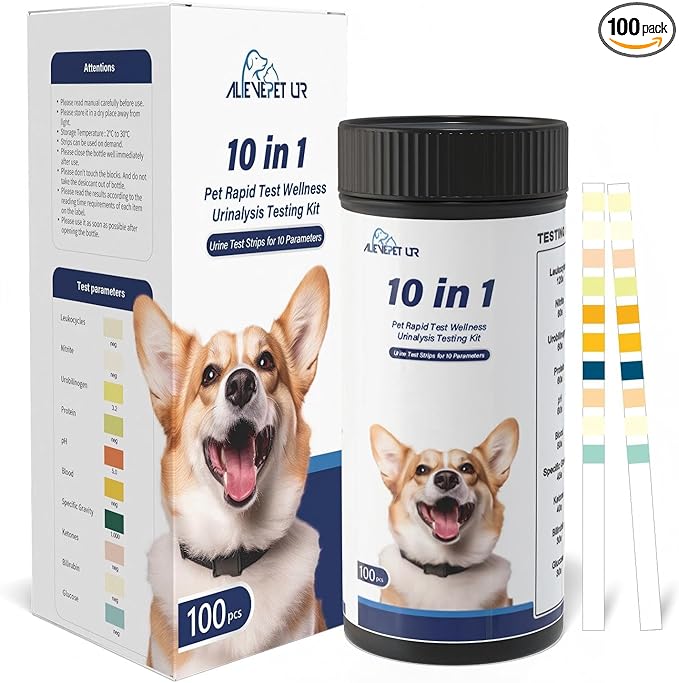 Reagent Strips for urinalysis Cat & Dog Urine Test Strips 10-Parameter 100ct, Diabetes, Blood Ketone, UTI, Glucose, Nitrite, Specific Gravity, pH, Protein, Leukocycles & More.1 Pack