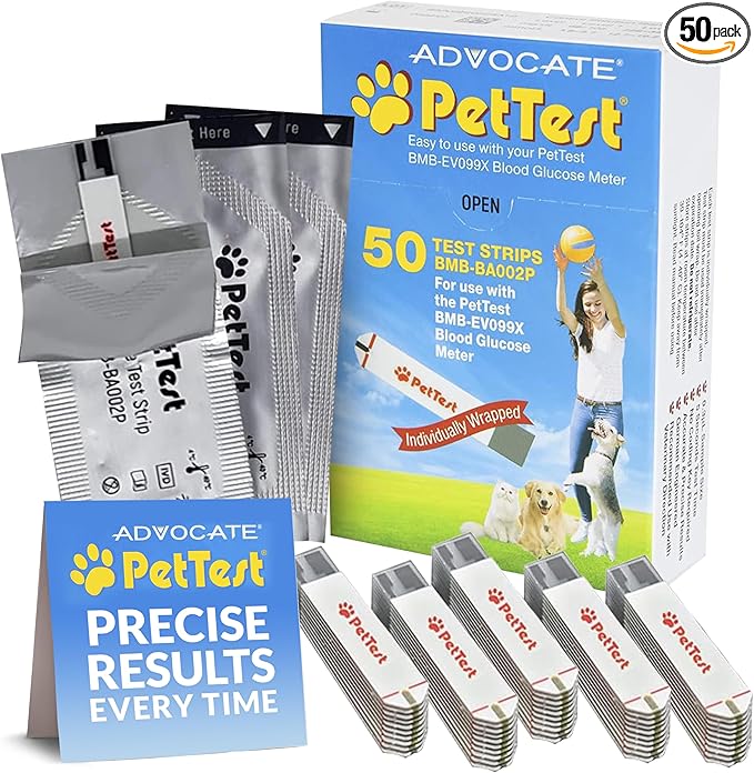 PetTest Blood Glucose Test Strips, Easy Open for Use with a Glucometer Monitor for Dogs & Cats, sterilized and Individually Sealed, 50 Pieces