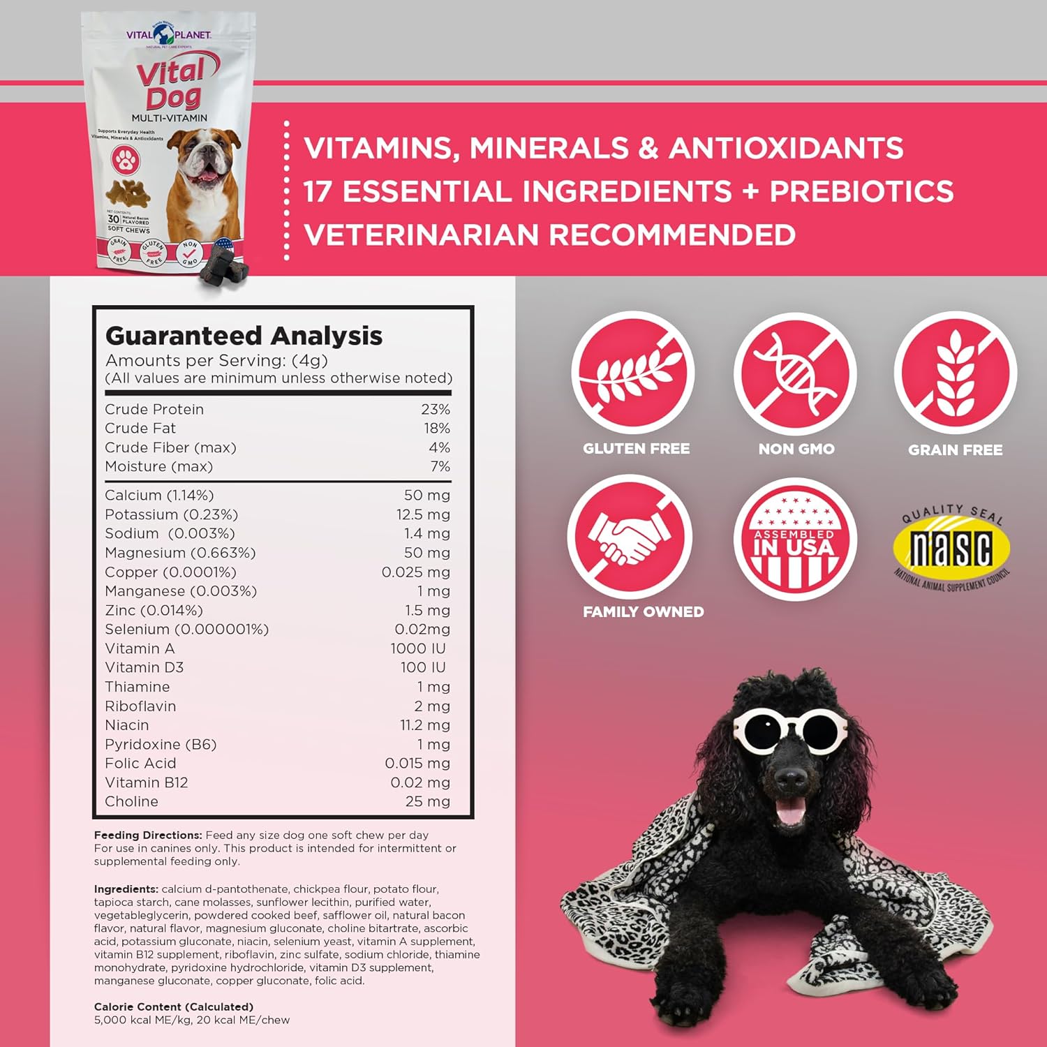 Vital Planet – Vital Dog Multivitamin for Everyday Health with Vitamins, Minerals and Antioxidants – 30 Bacon Flavored Soft Chews